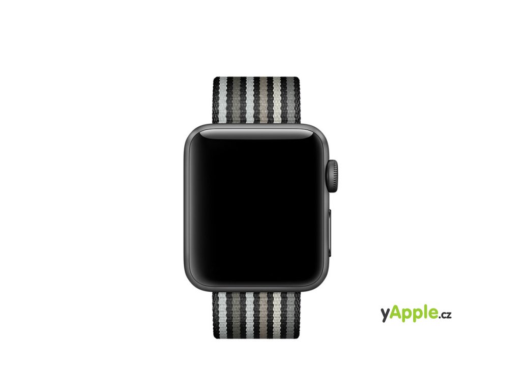 Černě proužkovaný tkaný nylonový řemínek pro Apple Watch 42, 44 a 45 mm