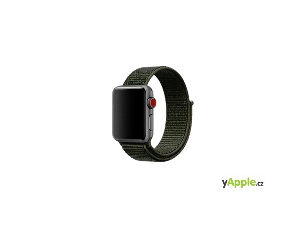 Khaki provlékací řemínek na suchý zip pro Apple Watch 38, 40 a 41 mm
