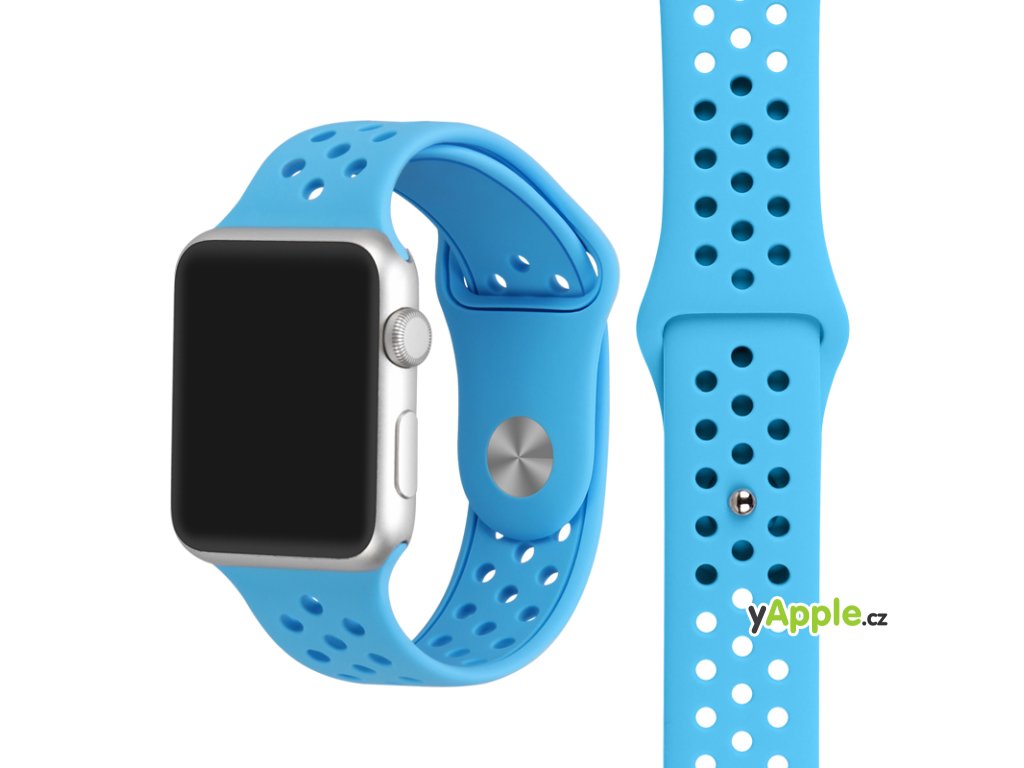 Světle modrý silikonový řemínek s odvětrávacími otvory pro Apple Watch 38, 40 a 41 mm